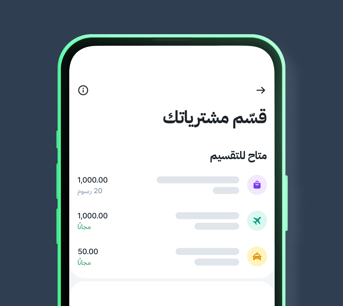تحكم بمصاريفك واختر المشتريات التي تود تقسيمها على 4 دفعات — مجانًا لدى شركاء بطاقة تابي. خطط سداد أطول قادمة قريبًا.