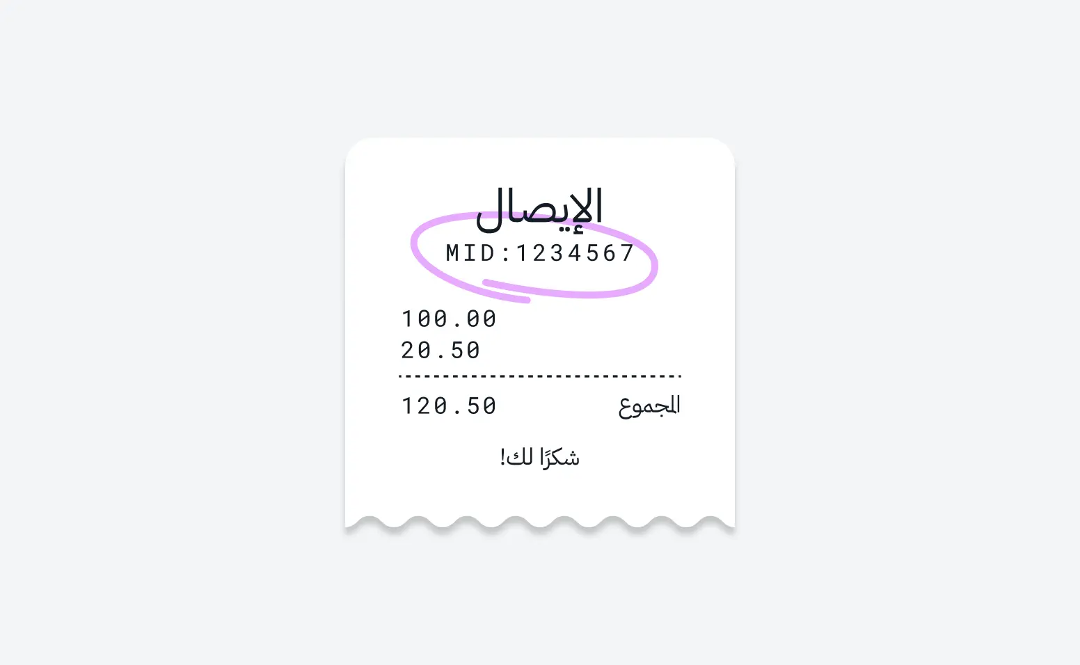 ستجده في الجزء العلوي من إيصال الدفع المطبوع من جهاز نقاط البيع