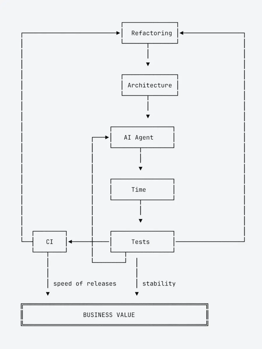 That is why tests become more than just a quality practice. They are part of the infrastructure that makes ongoing development possible. They allow both humans and agents to make changes in a growing system without relying on complete knowledge of everything around them. For that to work, tests need to cover business requirements well enough to catch regressions, while also remaining fast, understandable, and reliable.