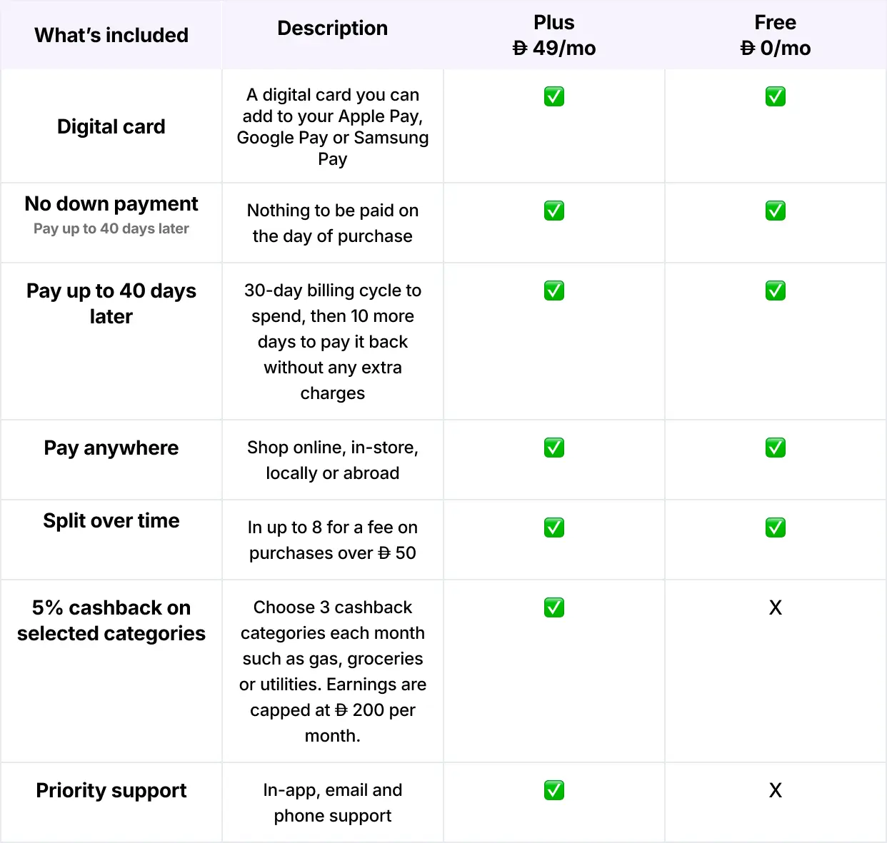 Explore the table below to find the plan that works best for you.